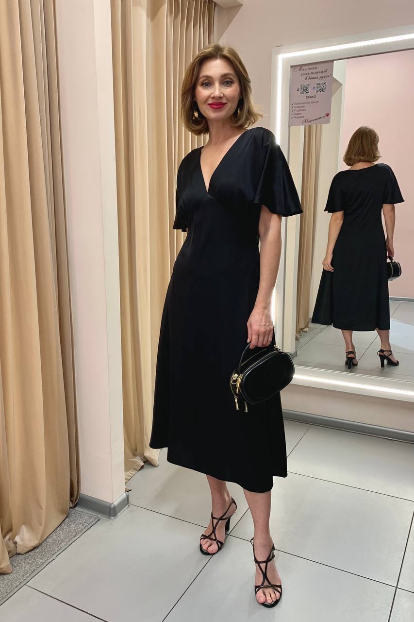 Шелковистое струящееся платье всесезонной носки. Выгодно подчеркивает длину ног и изящность фигуры.