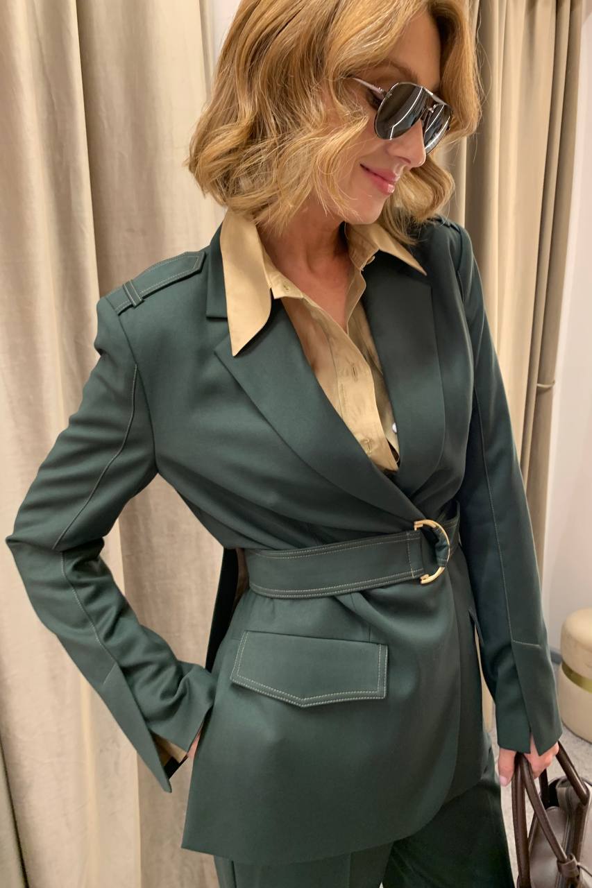 Стилист Юлия Бондарь сочетает его красиво — с бежевым и коричневым. Вместе эти цвета выглядят дорого и стильно.
