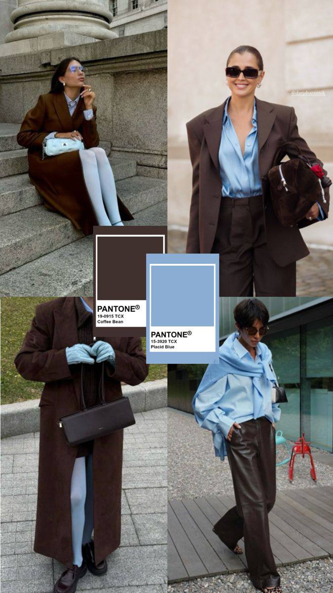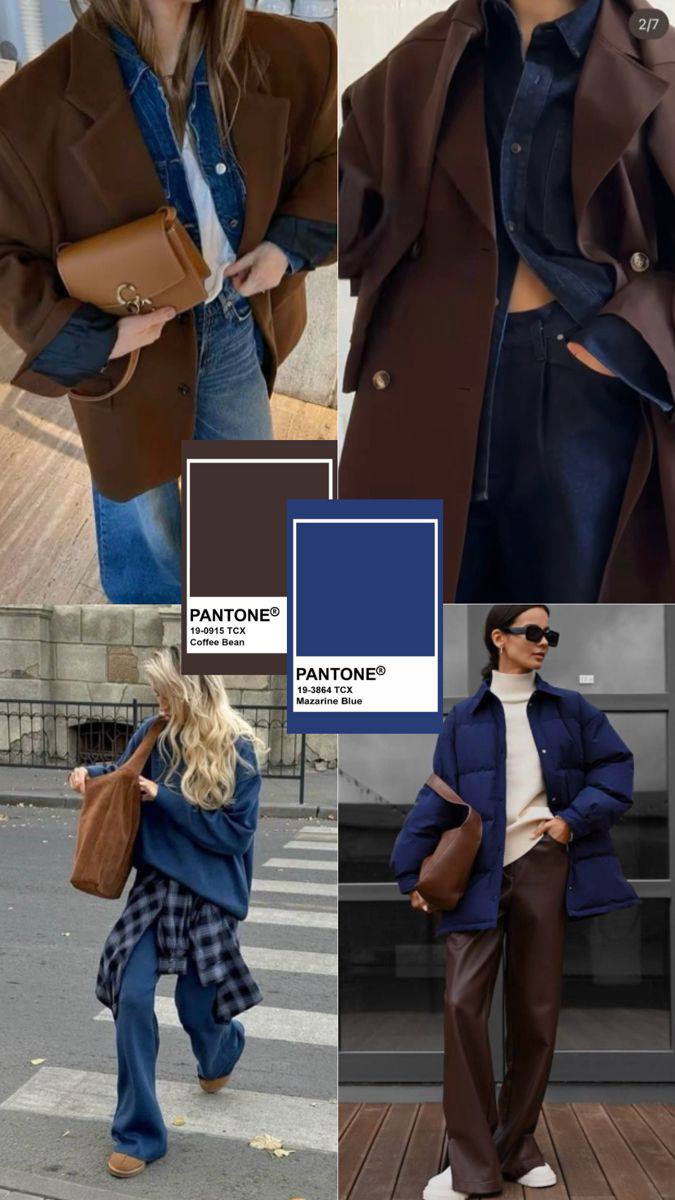 ⚫️Синий: очень красиво и благородно выглядят оттенки коричневого с синими: также базовое сочетание и, что немаловажно, многофункциональное: можно заручиться коричневым жакетом/кожаной курткой/ пальто, сочетать с синим свитером и джинсами, или же просто миксовать аксессуары в данных оттенках. Главное, чтобы вещи сочетались по стилю.
