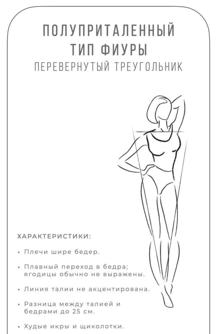 🔻Типаж «перевернутый треугольник» характеризуется широкими плечами и узкими бедрами.